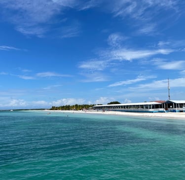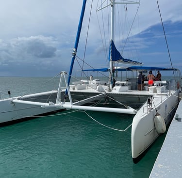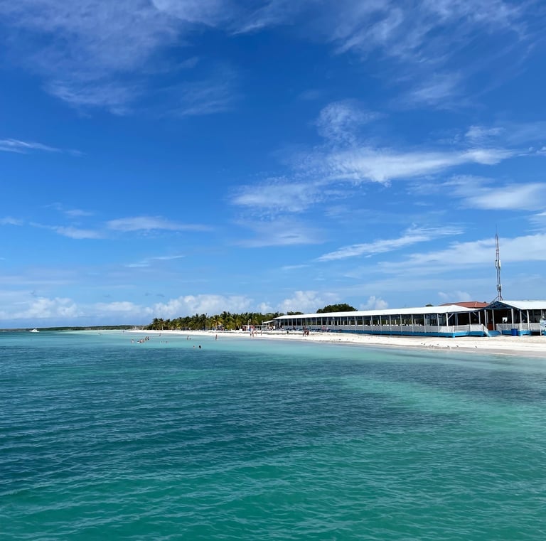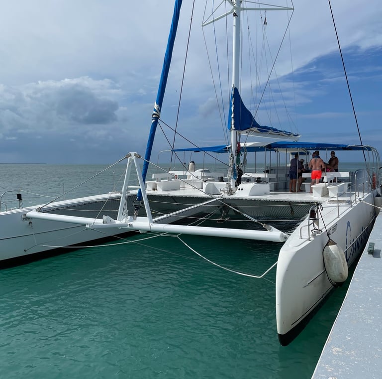 Enjoy a day boat trip with a catamaran to Cayo Blanco while in Varadero. The excursion starts from the Marina of Varadero and includes unlimited local cocktails and soft drinks on board as well as lunch with seafood in a buffet style at Cayo Blanco. A complementary pickup service from all hotels in Varadero is also offered. You will have the opportunity to admire the coral seabed at a certain point of the route (equipment is provided for free) as well as to experience the unique opportunity of swimming with trained dolphins, in the presence of trainers in a specially designed Dolphinarium in the open sea. Upon arrival at Cayo Blanco, you will have free time on the beautiful Caribbean beach and a seafood meal at the island's seaside restaurant. The cost is 100.00€ without tips, which are highly appreciated.